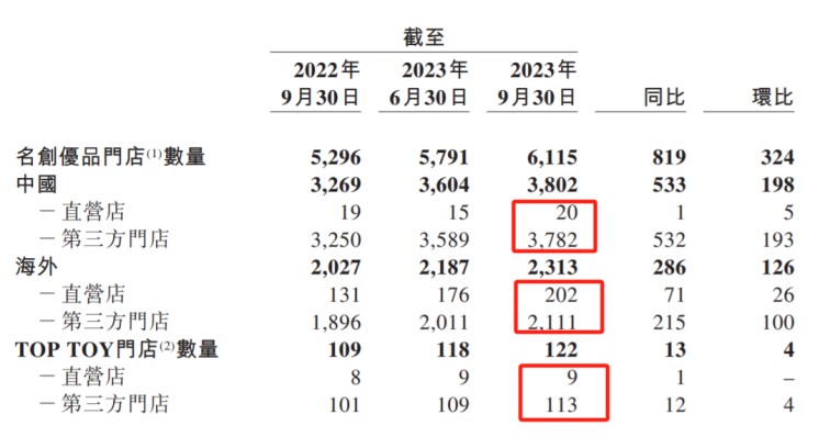 根據Q3 的數據,名創優品在國內的直營門店數量為 20 家,相比去年同期僅增加了 5 家,而與此同時,第三方門店的數量增加了 193 家。