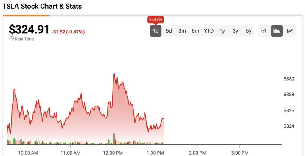 TSLA stock is falling today but is still up by 35% during the past three months.