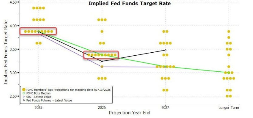 花旗則認為,美聯儲傾向於將關税影響視為 “一次性” 價格衝擊,因此沒有動力通過上調點陣圖來釋放過度的鷹派信號。