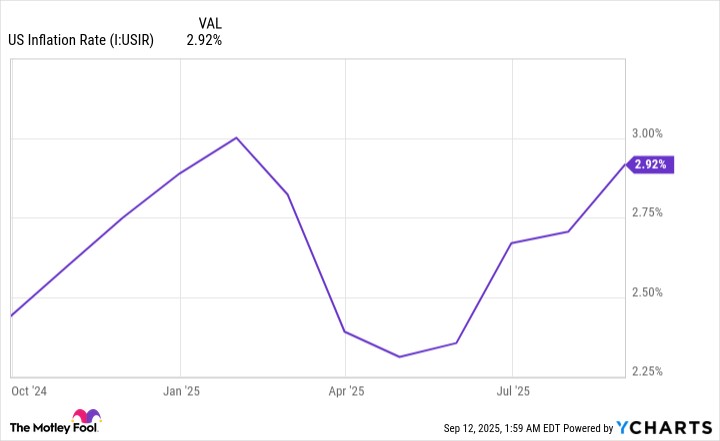 隨着總統的關税生效,國內通貨膨脹率明顯上升。美國通貨膨脹率數據來源於 YCharts。