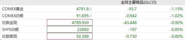 Safe-haven assets are clearly under pressure. With the easing of tariffs and geopolitical tensions, spot gold fell nearly 1% in early Asia-Pacific trading, dropping below the $4,800 mark. Spot silver also declined by 0.8%.