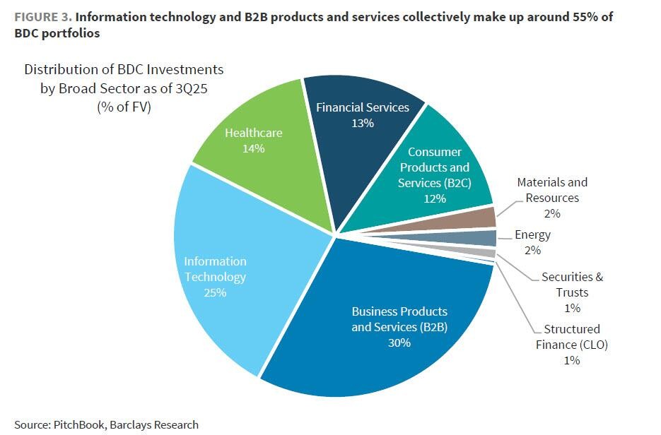 “軟件是 BDC 最大的行業敞口,約佔投資組合的 20%,這使得該行業對近期軟件股權和信貸估值的下降特別敏感。”