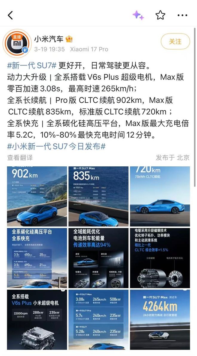 Xiaomi Spring Launch Event: New SU7 starts at 219,900, all models equipped with embedded LiDAR, first mobile phone lobster officially enters closed testing