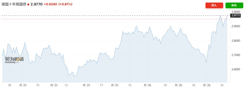歐元區債市同樣承壓,其中,德國 10 年期國債收益率創下 2011 年以來最高紀錄。