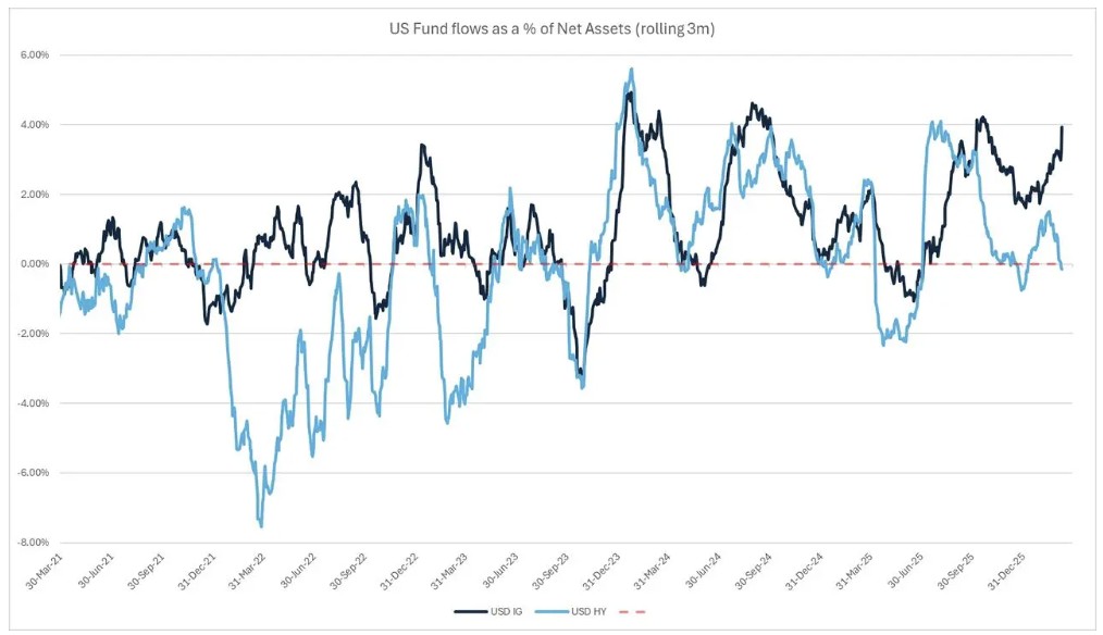 The only exception is not energy but finance. The spreads on bonds from financial services companies have widened by 39 basis points this year, with issuers related to Blue Owl, FS KKR, and private credit funds showing the weakest performance.