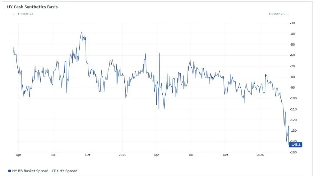 It is noteworthy that the main pressure in the credit market does not come from the energy sector but is concentrated in the financial sector, particularly institutions related to private credit. Bonds associated with Blue Owl, FS KKR, and private credit funds have performed the worst, with financial bond spreads widening by 39 basis points this year.