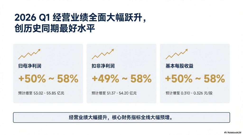 China Aluminum expects its first-quarter 2026 net profit attributable to parent company to reach RMB 5.302 billion to RMB 5.585 billion, a year-on-year increase of 50% to 58%, reaching the best level in the same period in history. The profit is mainly driven by the core business, with a synchronized increase in net profit after deducting non-recurring items. The substantial improvement in performance is attributed to three core factors: the dilution of marginal costs due to full production at stable and optimized levels, enhanced raw material bargaining power from an increased self-mining ratio, and refined cost reduction management through whole-industry chain synergy