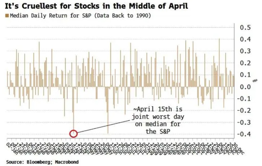 Amid a strong rebound in US stocks this week, a historical pattern is quietly approaching—April 15, the US tax filing deadline, is seasonally the worst-performing trading day of the year for the S&P 500.