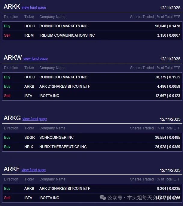 Cathie Wood bought $1.6M HOOD today. She recently said this stock was good for swing trading—didn’t expect this price level. Also bought $400K ARKB, $650K SDGR, $500K NRIX