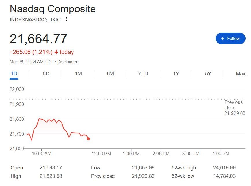 在特朗普表示不確定能否與伊朗達成協議後,兩大美股指標普 500 和納指的跌幅擴大,納指跌超 1%,標普跌近 0.8%,早盤曾轉漲的道指重回跌勢。
